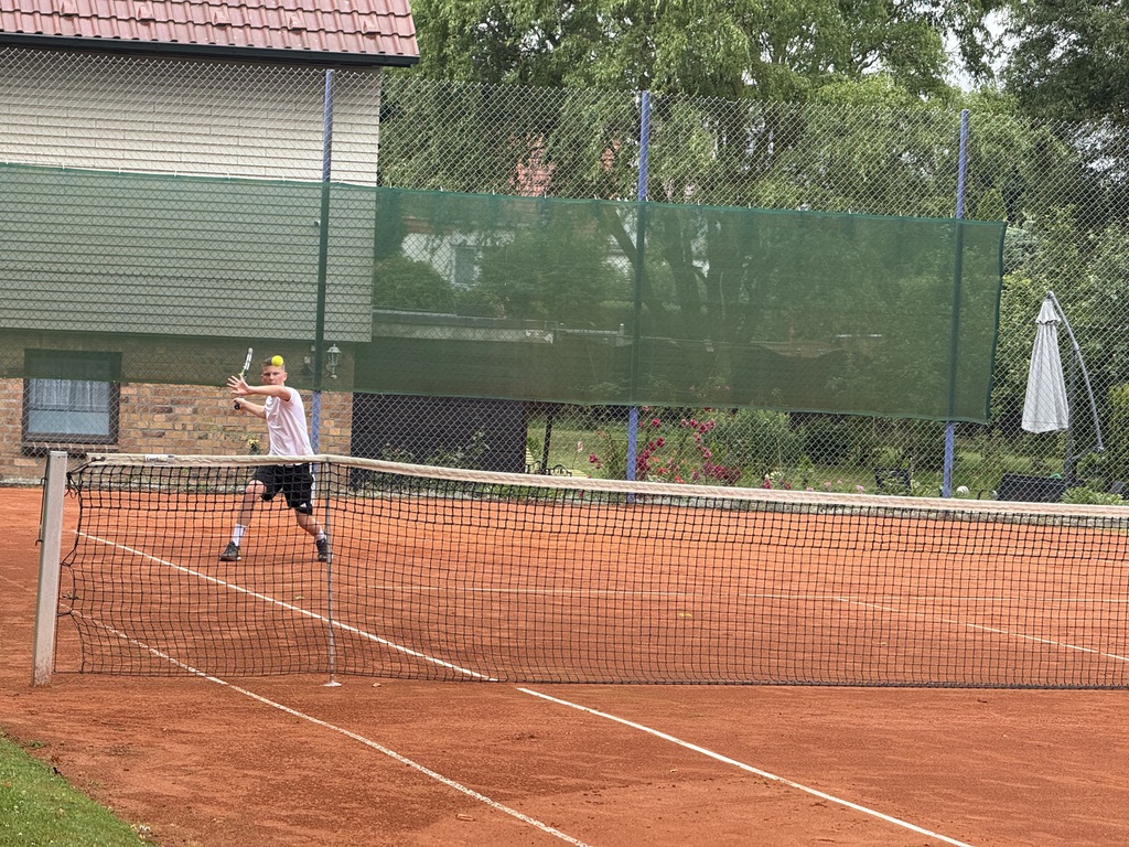 Am Samstag, dem 12. Juli 2025, fand das alljährliche Vereinsturnier des Tennisvereins Teterow statt. Obwohl das Wetter mit Nieselregen und einigen Regeneschauern nicht optimal war, ließen sich die Mitglieder nicht die gute Laune verderben und sorgten für einen spannenden und sportlichen Tag. Das Turnier wurde in zwei Kategorien ausgetragen: die Herrenkonkurrenz im Turniermodus sowie die Damenkonkurrenz im Jeder-gegen-Jeden-Format. Insgesamt traten acht Herren und fünf Damen an, um ihre Fähigkeiten unter Beweis zu stellen. Trotz des Regens zeigten die Spieler großen Einsatz und Durchhaltevermögen. Besonders hervorzuheben ist der Sieg von C. Cummerow in der Herren - Konkurenz, der sich nach dem Titelgewinn 2021 gegen seine Mitspieler durchsetzen konnte. Bei den Damen konnte M. Fritzsche ihren Titel erfolgreich verteidigen und gewann erneut den Vereinspokal. Die Herrenkonkurrenz wurde im klassischen Turniermodus ausgetragen, bei dem die Spieler in mehreren Runden gegeneinander antraten. Die Damen spielten im Modus „Jeder gegen Jeden“, was für spannende Begegnungen und eine enge Entscheidung sorgte.